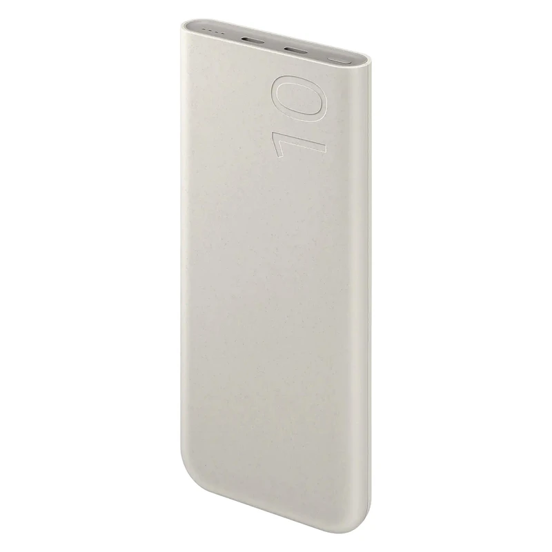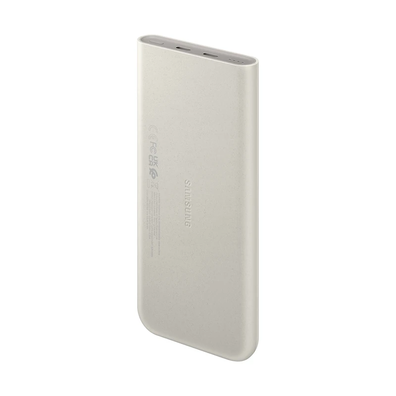 سامسونگ در طراحی EB-P3400 از پلاستیک مقاوم ABS استفاده کرده که علاوه بر استحکام بالا، وزن کلی دستگاه را به میزان قابلتوجهی کاهش داده است. سطح مات بدنه از لغزش جلوگیری کرده و مقاومت خوبی در برابر خط و خش دارد. همچنین لبههای منحنی باعث میشود پاوربانک بهراحتی در دست قرار گیرد و در کیف یا جیب فضای زیادی اشغال نکند. نکته قابلتوجه در این مدل، استفاده از مواد بازیافتی در ساخت آن است؛ اقدامی که نشاندهندهی تعهد سامسونگ به کاهش اثرات زیستمحیطی محصولاتش است. این پاوربانک با ابعاد ۱۴.۸ در ۷.۰ در ۱.۵۶ سانتیمتر و وزن تنها ۲۱۰ گرم، یکی از سبکترین گزینهها در ظرفیت خود محسوب میشود و برای حمل روزانه، سفر یا استفادهی کاری کاملاً مناسب است.