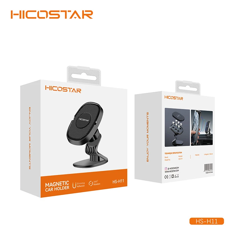 پایه نگهدارنده گوشی موبایل هایکواستار مدل HS-H11 از مواد با کیفیت بالا ساخته شده که در برابر عوامل بسیاری (مانند خط و خش) مقاوم هستند. این محصول با اندازه کوچکی که برای آن طراحی شده است ، به شما اجازه داده است که این نگهدارنده را بر روی تمام سطوح صاف به راحتی نصب کنید.بر روی نگهدارنده گوشی موبایل مخصوص داشبورد ماشین HS-H11 شش آهنربای قدرتمند قرار داده شده است که توانایی نگه داشتن گوشی هایی با اندازه صفحه نمایش 5 تا 10 اینچ را دارد.قابلیت 360 درجه این محصول به شما اجازه می دهد که زاویه آن را به تمام جهات تغییر داده و به راحتی از آن استفاده کنید . شرکت هایکواستار به تولید و ارائه محصولات با کیفیت شهرت دارد و با تولید نگهدارنده و هولدر گوشی موبایل هایکواستار مدل HS-H11 با طراحی عالی و کیفیت بالا بار دیگر خود را در بین بهترین تولید کنندگان لوازم جانبی موبایل قرار داده است. نگهدارنده و هولدر گوشی موبایل هایکواستار مدل HS-H11 با استفاده از شش آهنربای قدرتمندی که دارد می تواند تبلت هایی با اندازه صفحه 10 اینچ را بدون کوچکترین لرزش و یا تکانی را بر روی داشبورد شما نگه دارد. طراحی بسیار زیبا و مقاوم این محصول به گونه ای انجام شده است که میتوانید سال ها از آن در خودرو خود استفاده کنید ، و این یکی از دلایلی است که این نگهدارنده را تبدیل به یکی از هولدر های گوشی موبایل محبوب و پر فروش بازار تبدیل کرده است . اندازه کوچک این نگهدارنده گوشی موبایل فضای کمتری از داشبورد ماشین و سطوحی که بر روی آن نصب می شود را اشغال می کند و فضای کافی را برای شما برای گذاشتن وسایل دیگر را فراهم می کند. امروزه استفاده از نگهدارنده های گوشی موبایل به بیشترین میزان خود رسیده است. در این نگهدارنده و هولدر گوشی موبایل HICOSTAR مدل HS-H11 از چسبی با قدرت چسبندگی بسیار زیاد استفاده شده است و این ویژگی موجب می شود تا بتوانید بدون مشکلاتی همچون کنده شدن هولدر از روی داشبورد ماشین جلوگیری به عمل آید. شرکت سازنده ی لوازم جانبی موبایل HICOSTAR با استفاده از بهترین نوع چسب موجود در بازار توانسته مرغوب ترین پایه نگهدارنده گوشی همراه را تولید نماید.