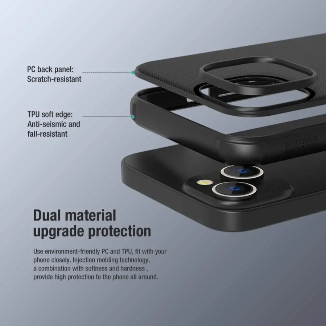 قاب Nillkin Super Frosted Shield Pro for iPhone 14 از مواد مرغوب PC سازگار با محیط زیست در دمای بسیار بالا برای گوشی آیفون 14 طراحی و روانه بازار شده است. قاب نیلکین گوشی آیفون 14 از رنگبندی های خاص در نظر گرفته شده است و همچنین سطح این قاب مات بوده و دارای نقاط برجسته و ریزی که تمام قسمت قاب را پوشش میدهد، مانع از جذب لک، چربی و اثر انگشت روی قاب می شود.